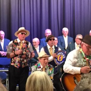 A varied programme saw pieces from The Holy City to My Way from the men and Hallelujah to the Bohemian Rhapsody from the Ladies. Colin Smith sang The Song of the Toreador and Fishermen of England whilst John Stamp soloed his verse of the wonderful hymn, How Great Thou Art. Glyn Lloyd took the solo in Kalinka, which involved some lively clapping by the choir and audience. Of course, we could not forget Squawk the parrot, who always likes to appear with the Pirates. Mick Mullarkey tried his best, but the Saga Louts could not let him entirely hog the limelight. A section of the ladies choir, The Nightingales, sang Fernando and Pippa and Belinda sang a marvellous version of the Leonard Cohen classic, Hallelujah.